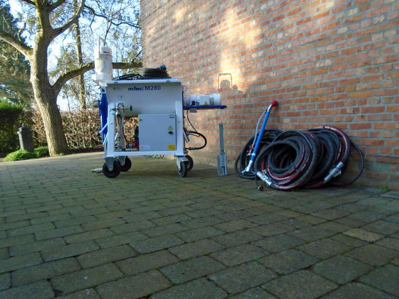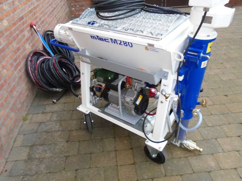 Leveringsomvang: M-TEC M280 CUSTOM , 250l/m compressor , waterpomp , spuitlans + 2 doppen ,20m mortelslang , 20.7m luchtslang , 20m waterslang , 2m sproeilans , 25m stroomkabel , VANHERCK D4-1/2 stator/rotor , onderhoudsmateriaal.